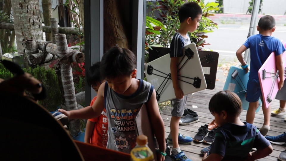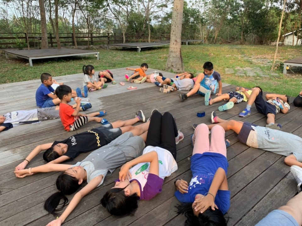 在晚餐的時間,小珍老師帶著孩子們沉靜下來,當我們在準備食物的時候,小珍老師帶他們唱著歌,原來感恩是那麼簡單的事情,那種知足、感恩,讓我們上了一課。
