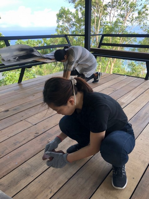 接著是下午就分散到不同的地區協助,整地、油漆、施肥、搬運、砂磨,各種不同的工作,