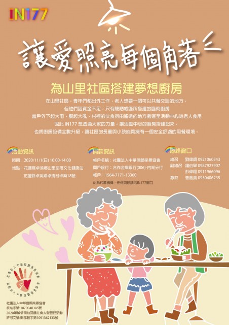 IN177計畫募集新臺幣130萬元幫助山里社區擁有一個安全舒適的共餐環境,