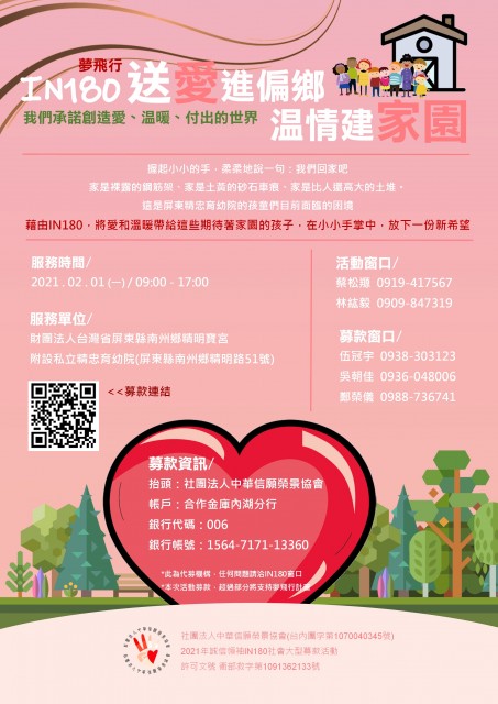 台北IN180大型社服【送愛進偏鄉 溫情建家園】