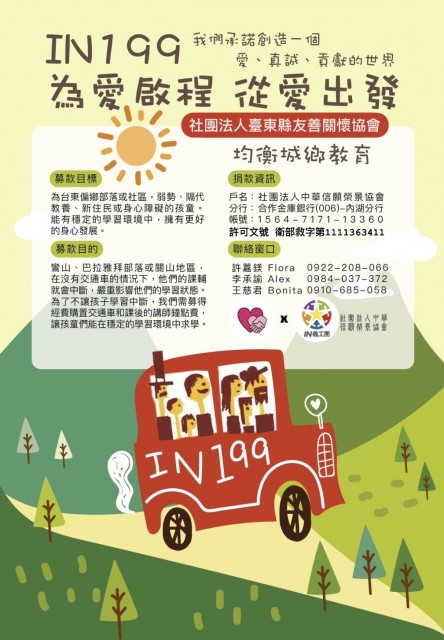 但礙於孩子們來自在偏遠的鸞山、巴拉雅拜等部落或關山地區,往往在沒有交通車的情況下,他們的課輔就會中斷,尤其寒暑假更是,嚴重影響他們的學習狀態。為了不讓孩子學習中斷,我們和財團法人台東縣友善協會聯繫,想支持他們募得經費購置交通車和課後的講師鐘點費,讓孩童們可以在穩定的學習環境中求學。