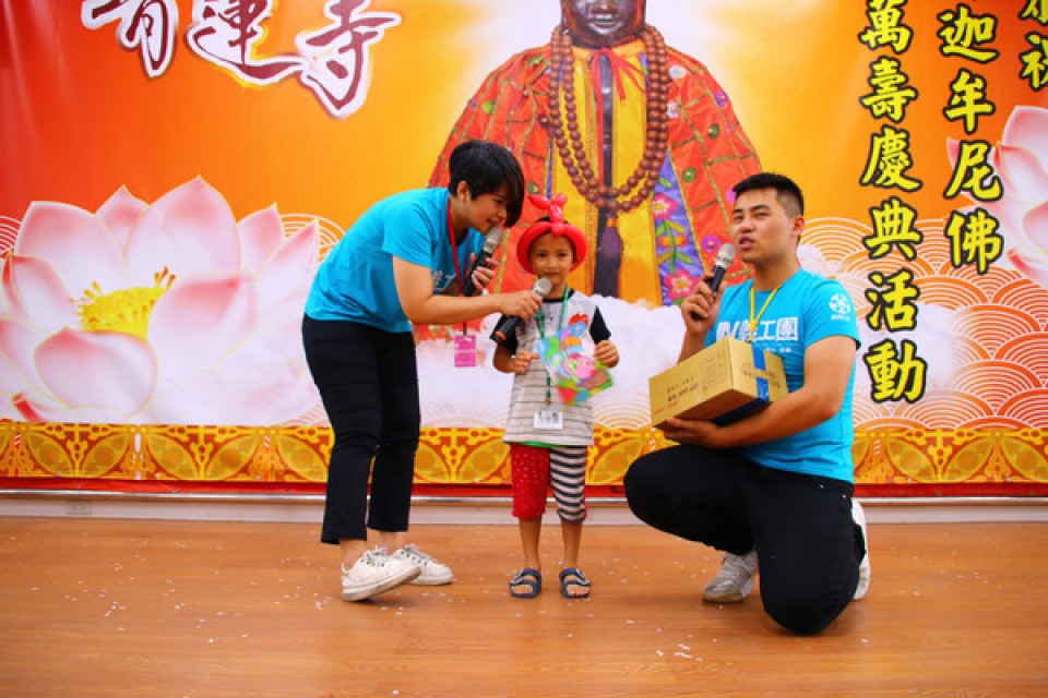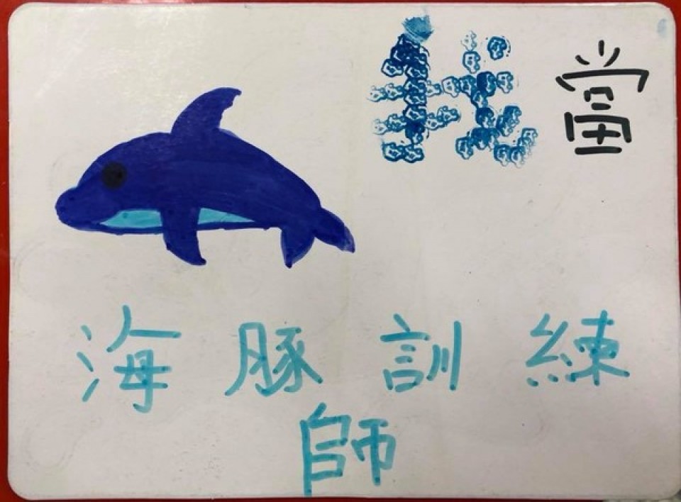 第二天義工團關懷對象是花蓮100位左右住在偏遠地區、隔代教養的小朋友,志工們和小朋友玩沙畫,陪伴他們把夢想繪畫出來,為他們的未來種下一顆正面的種子,大家聽小朋友出來分享他們的夢想板時,都充滿力量和感動。義工團表示,其中有位小朋友叫小宣,她說未來的夢想是海豚訓練師,因為在爸媽還沒離婚前,曾經帶她去看過海豚表演,所以她長大想當海豚訓練師。